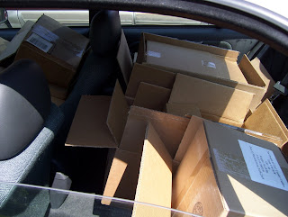 I followed up that experience by hauling all the boxes I kept from my last move (and the several moves before that, in many cases) from my storage space to my apartment. As I mentioned, it was 93 degrees, so my timing was impeccable as always.